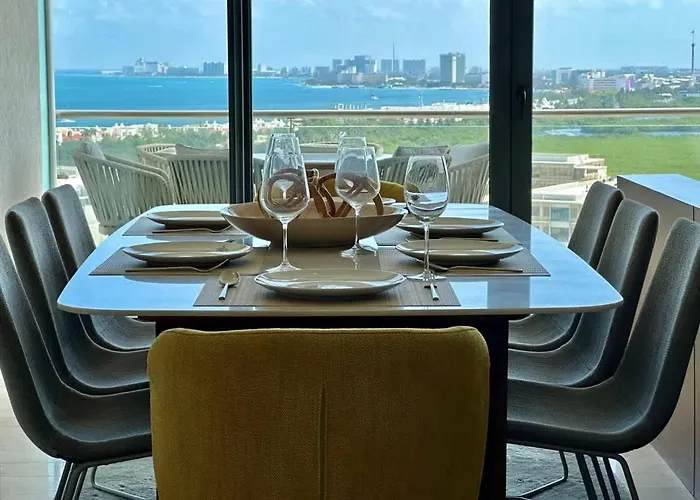 Situated about 5 minutes on foot from Barezzito Puerto Cancun, the spacious 270 m² 3Br Luxury Oceanfront Apt W/ Pool, Gym & Views! Cancun looks out onto the lake. Playa Tortugas is 4.8 km from the 4-bedroom apartment and Playa Langosta is located 3.4 km away.